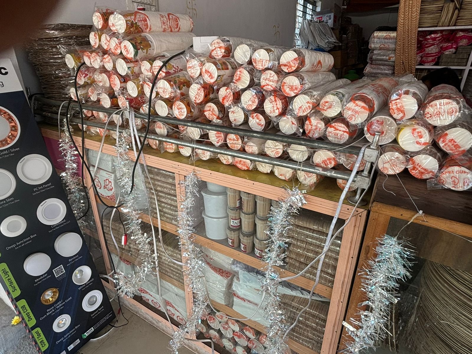 All types of paper plates, Water bottle, areka Plates, adke Plates, Spoons, Plastic spoons, Tooth Picker, User throw food box. Paper plates, manufacture unit, Paper Cups, Plastic cups, Tea Glass, Water glass, All size paper plates