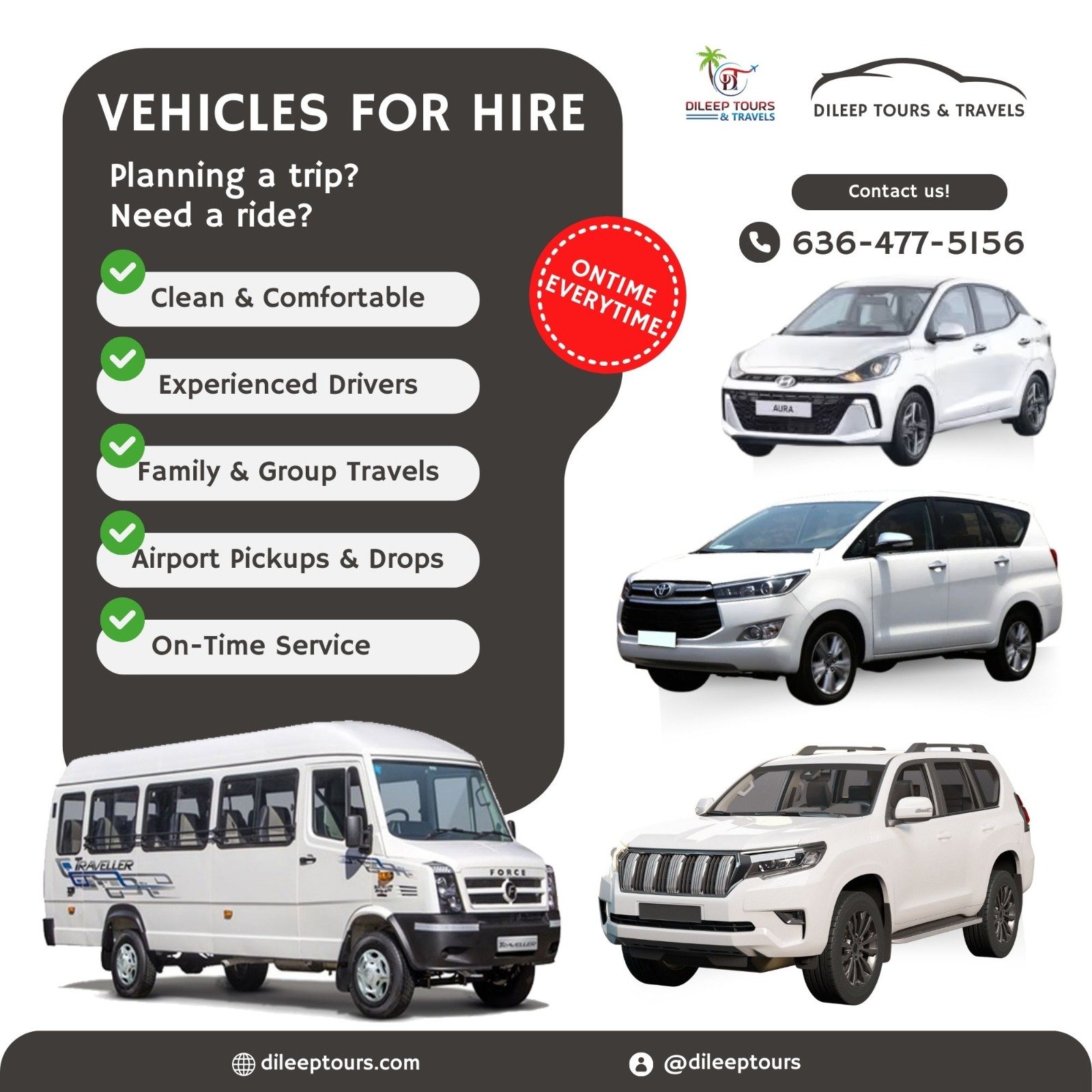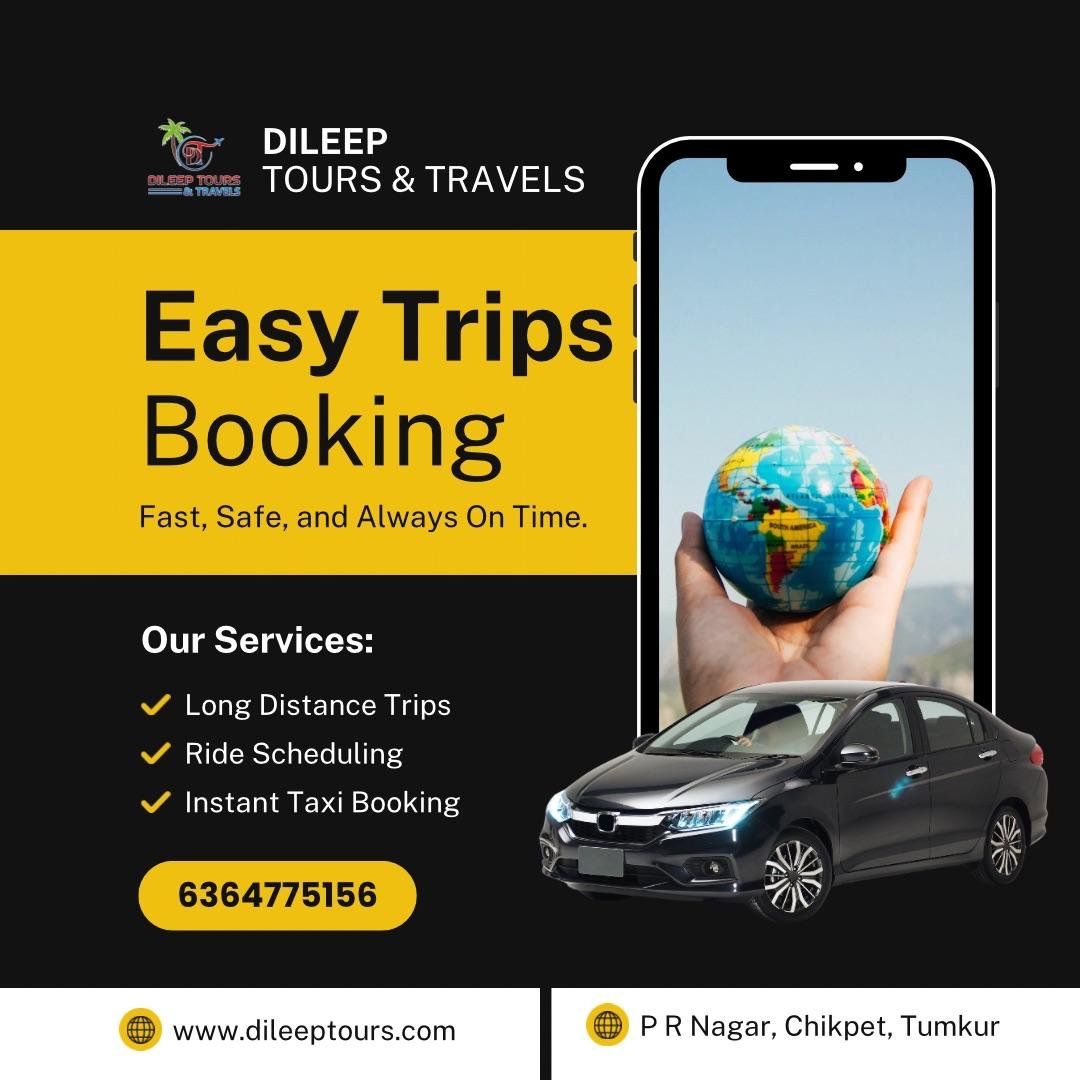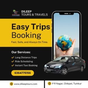 From Airport Transfers to Outstation Trips – Comfortable, Affordable & Hassle-Free Travel Solutions. Dileep Tours and Travels is one of Tumkur’s most reliable travel service providers, offering seamless car rental and chauffeur-driven solutions. Whether you need an airport transfer, a local city ride, or a comfortable outstation trip, we’ve got you covered. car hire, car for rent, car rentals, innova on hire, tempo traveler on hire, tt on hire, TT on hire, Mini bus on hire, Bus on hire,45 seater bus, 50 seater bus, car for outstation, car for airport drop or pickup.